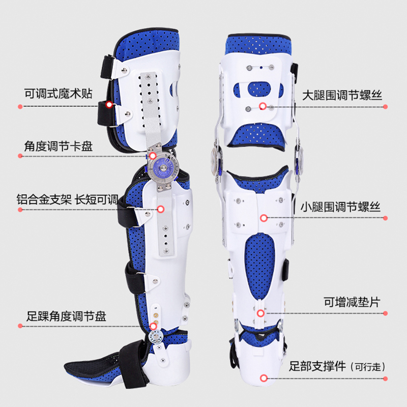 可调膝踝足固定支具产品作用:限位、固定、支撑膝关节踝关节。