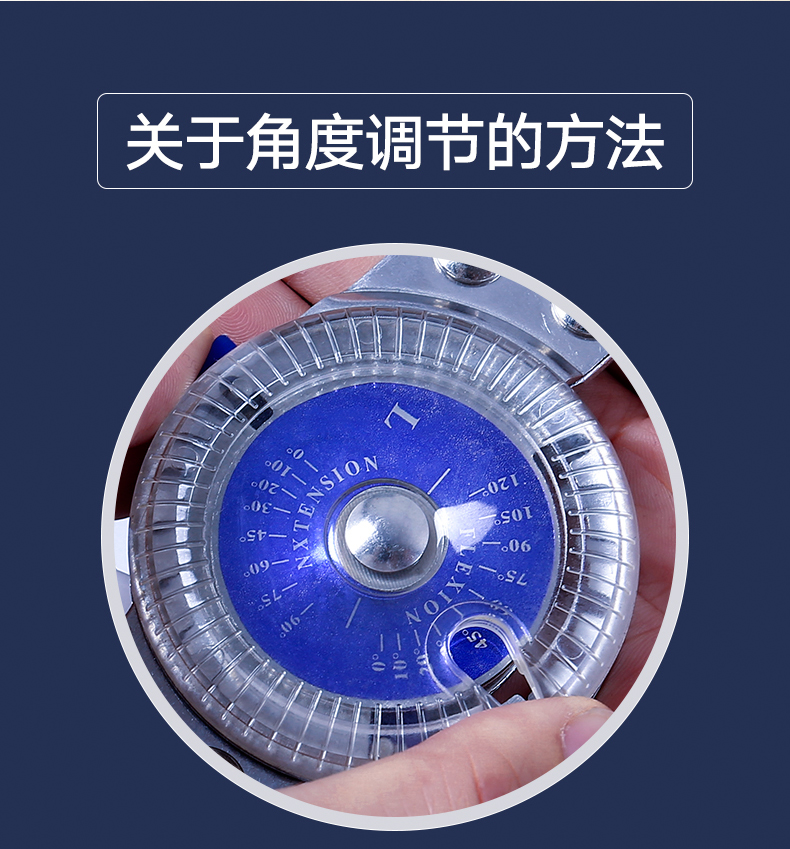 2.0-120度拔盘控制,是控制腿部完全角度调节(屈膝、控制膝关节回收方向角度调节),拔动前需先将上方透明转盘开口对着拔叉,然后再进行角度调节。