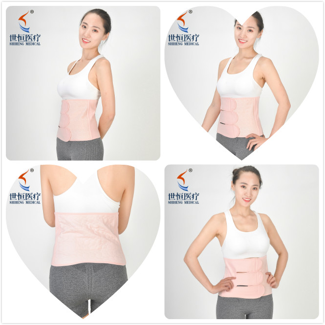 佩戴腹带时先仰卧平躺,把膝盖竖起,脚底平放在床上,大腿尽量与腹部成直角,然后将臀部抬高。无论是顺产还是剖腹产,产后大多都会使用收腹带。调整到合适的松紧度以后,粘扣固定在粘贴处。