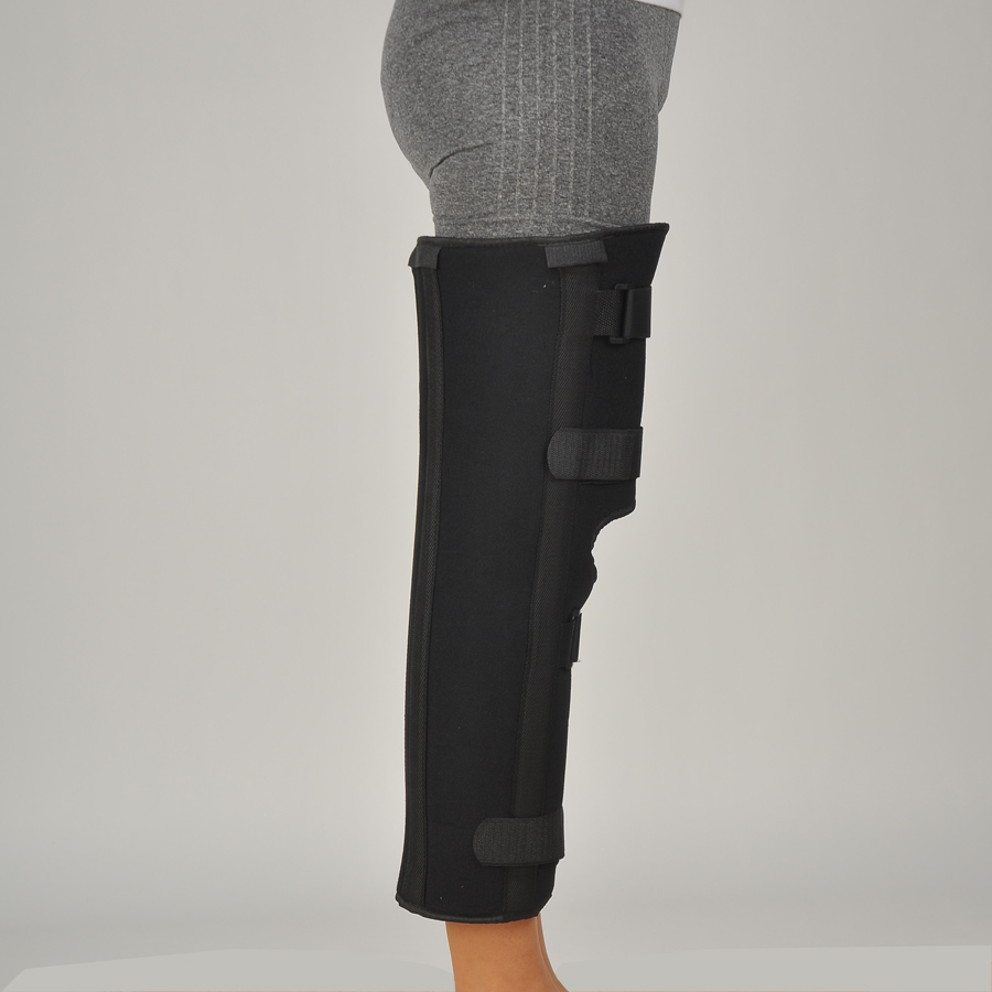 膝关节固定带又叫膝部固定带,膝盖固定护具,膝关节护具,护膝髌骨固定带。总之就是用于保护膝关节或膝关节损伤、韧带损伤的外固定和支撑。经常运动或者从事体力劳动的劳动人群会有不同程度的膝关节损伤。本产品采用丝光棉复合布加铝合金支条,由后面左右侧三个部位四根高强度铝合金型材固定,多条压力粘扣带调节松紧,固定膝关节、髌骨,适用于严重韧带扭伤,手术后恢复期使用。