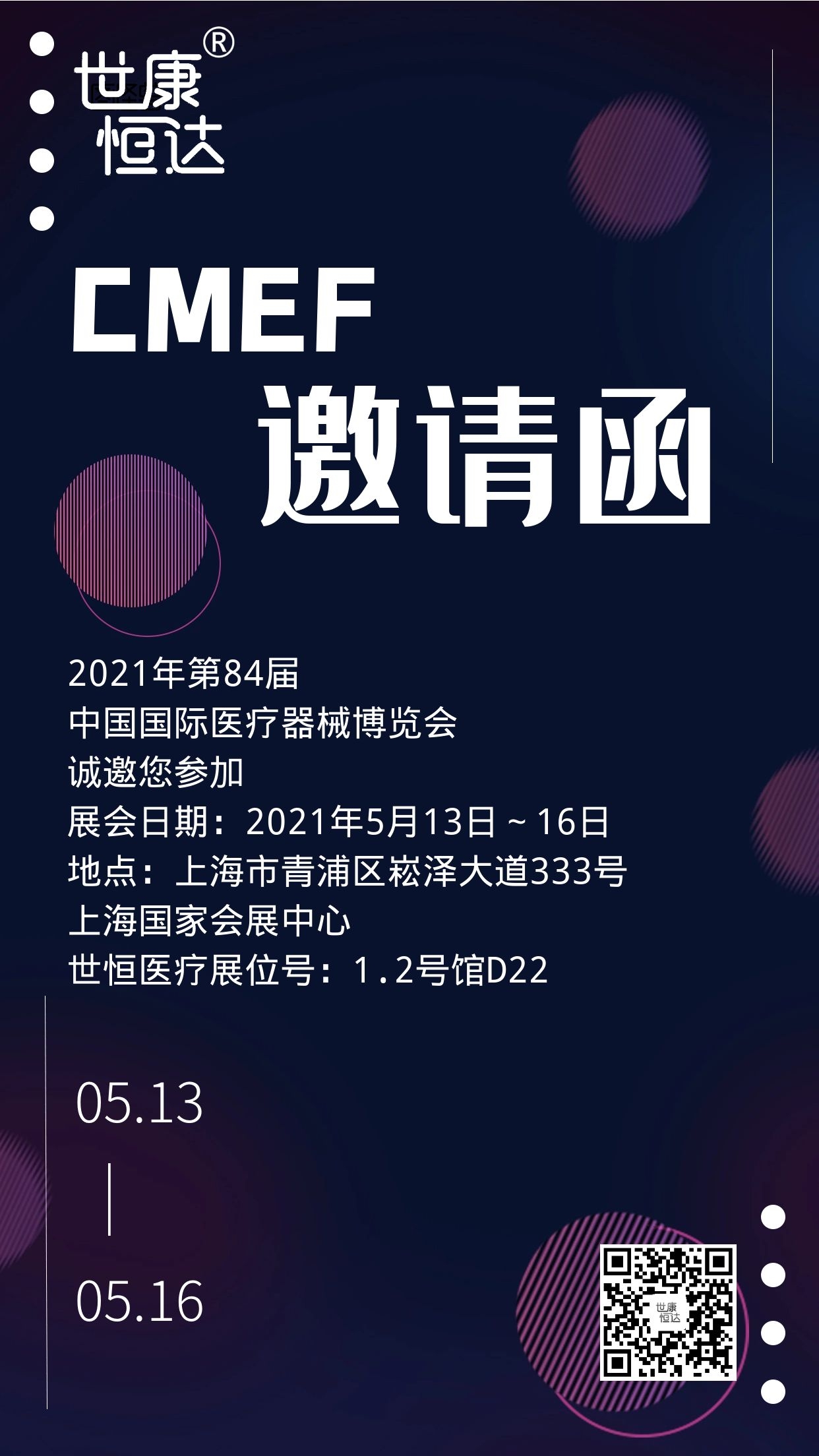 我司将于2021年5月13日-16日参加第84届CMEF(中国医疗器械博览会)。