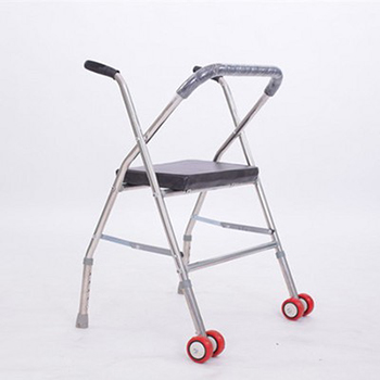 框式助行架:双手握住助行架,双脚站于助行架两后脚连线稍前侧(既站在助行架的框架内)站稳,第1步提起助行架,放置身前一臂远的地方,第2步向前迈出患侧或肌力较弱的腿,足跟落在助行架两后腿连线位置稍前侧,第3步迈出好腿,站稳同第1步;这样重复1,2,3步骤,完成步行。