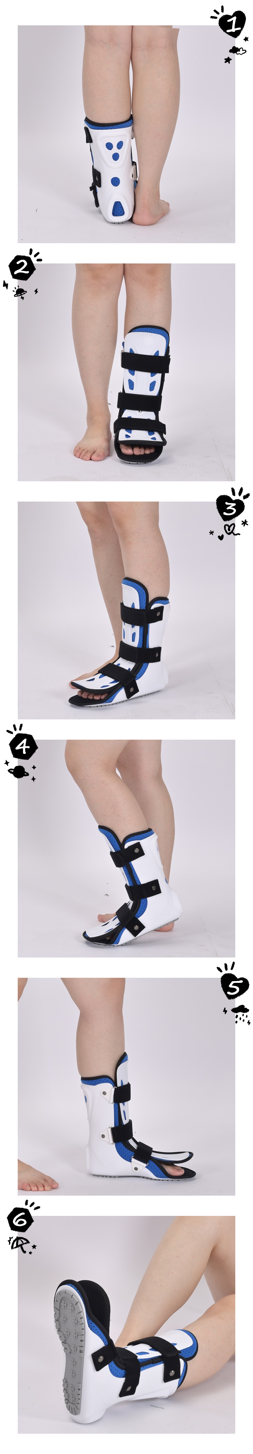 1、坚硬的白色塑料件套片限制踝关节向各个方向活动 。