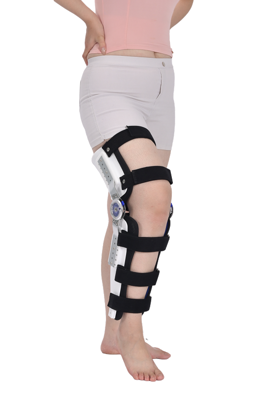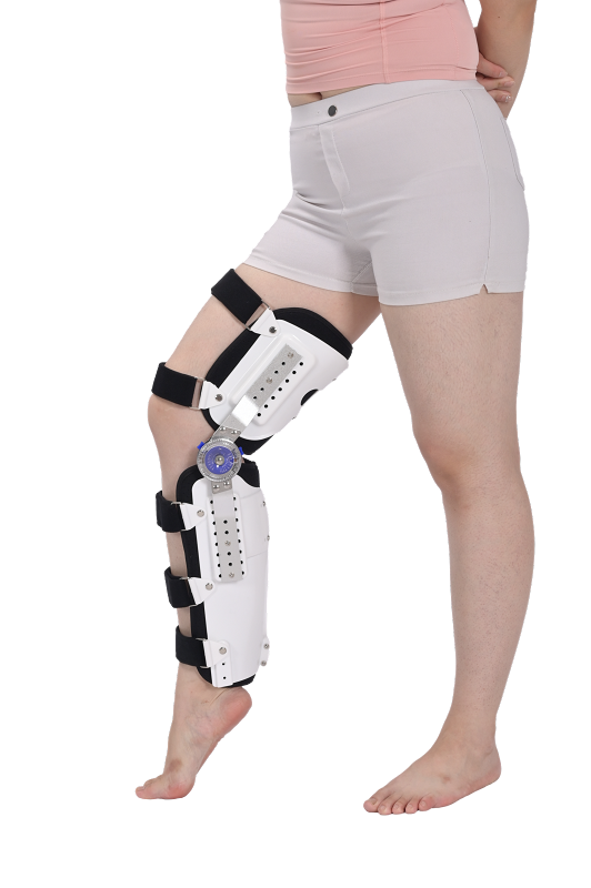 产品描述:该产品以金属支架为载体,通过膝关节处的角度卡盘实现限制膝关节活动的功能,产品配置半包围塑料护板,通过调节预制孔距调节长短和围度,操作简单。适用于膝关节骨折、韧带损伤,膝关节屈曲挛缩、软组织损伤,髌骨骨折、脱位、膝关节侧向不稳定、反屈膝的固定及后期康复训练。