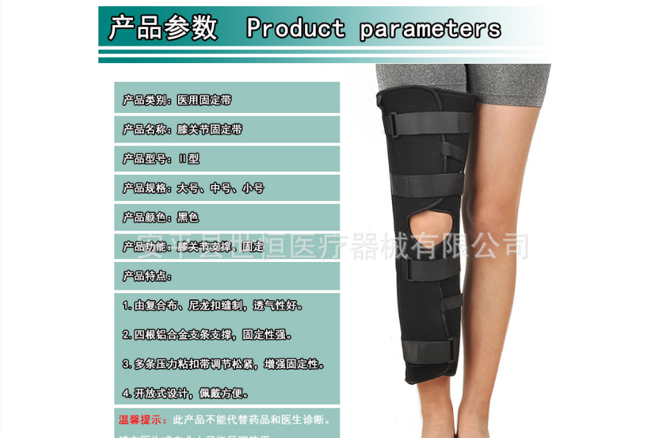 『适用范围』:主要用于膝盖固定,严重的韧带扭伤及处理后恢复期使用。