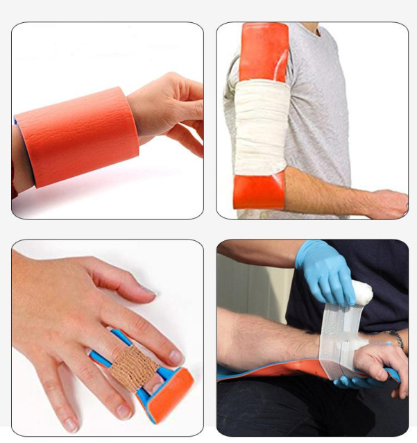 『适用范围山:两块夹板联用,可用作上肢、短下肢固定、长下肢固定、颈部、手指固定(按需要可将夹板任意裁剪)及肩关节脱臼固定,突发性 创伤的优良急救用品,可代替石膏。