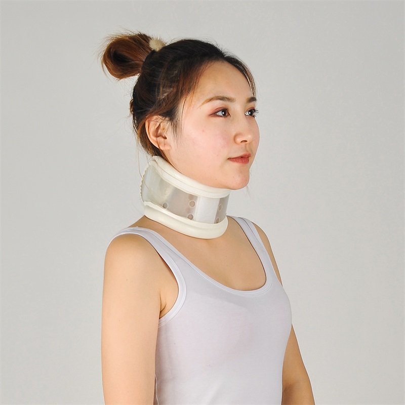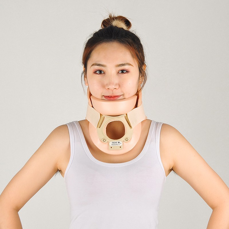 颈托一般分为四种(软颈托、充气颈托、硬颈托、头颈胸支具),硬颈托为高分子泡沫塑料加塑料支架、粘扣加工制成,可用粘扣调节松紧。
