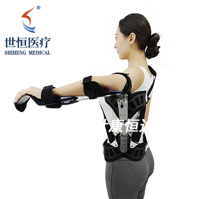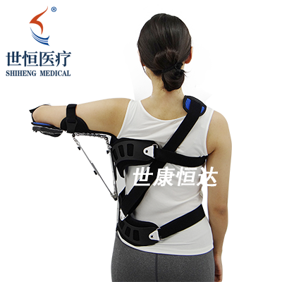 可调肩外展固定支具的功能可分为三类,一肘关节屈曲和伸展。二肩关节内收和外展。三肩关节内旋和外旋。
