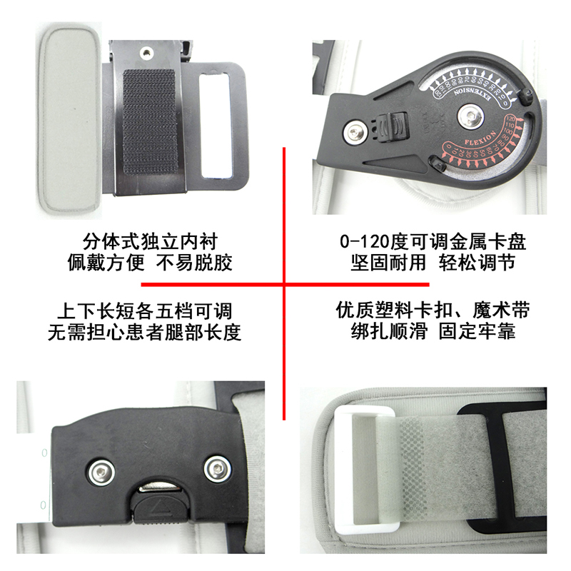 2、高粘魔术贴绑带,易于固定,大小可调节,适用于多种腿型。