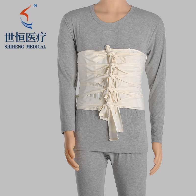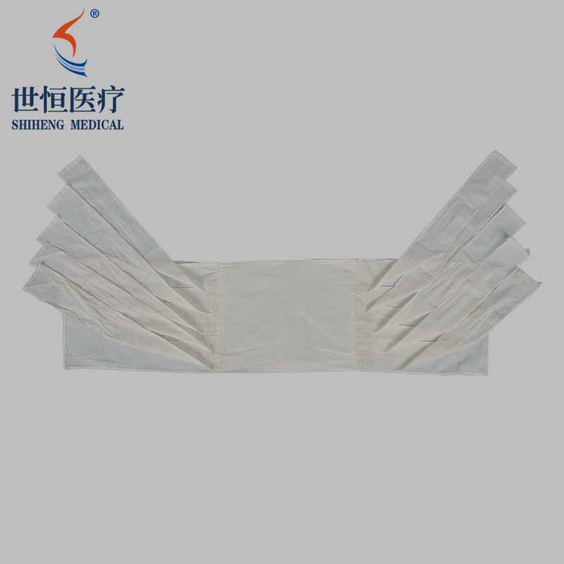 用于绷扎胸、腹部伤口,可固定下敷料。施加压力及支撑身体、保持舒适,预防伤口裂开,较为常用的是多头胸带和多头腹带。